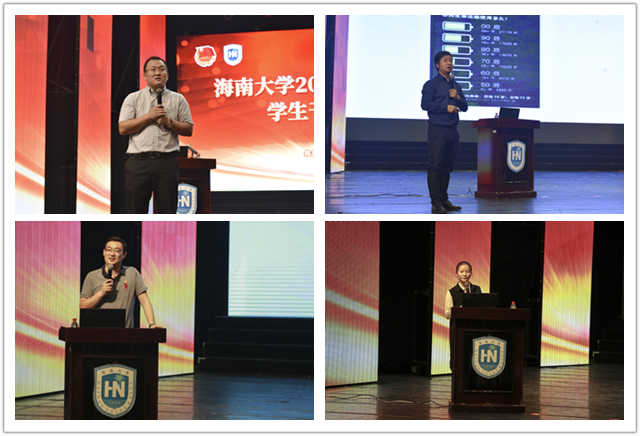 徐艾君老师与大家分享了艺术团在成长过程中的感动与荣誉;杨智伟老师向大家讲述了如何在当今时代中不再迷茫,并从中如何培养能力,实现突破自我;王寅老师围绕着“团队”、“平台”、“资源”、“创新”、“团队”和“集体”六个关键词展开讲解,分享了对学生干部成长的思考;王远露老师寄语学生干部,希望干部们在工作中可以有所成长,有所收获。