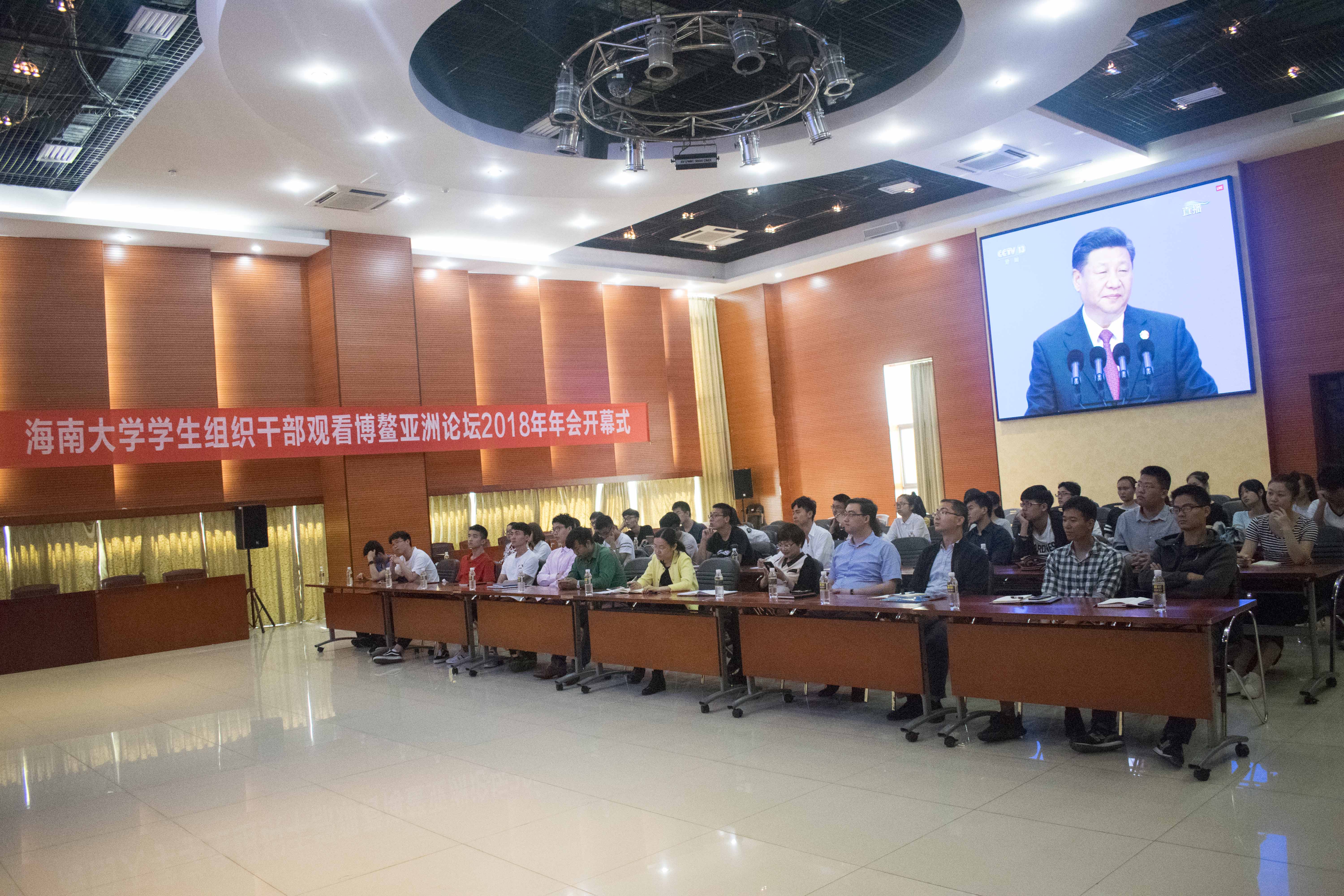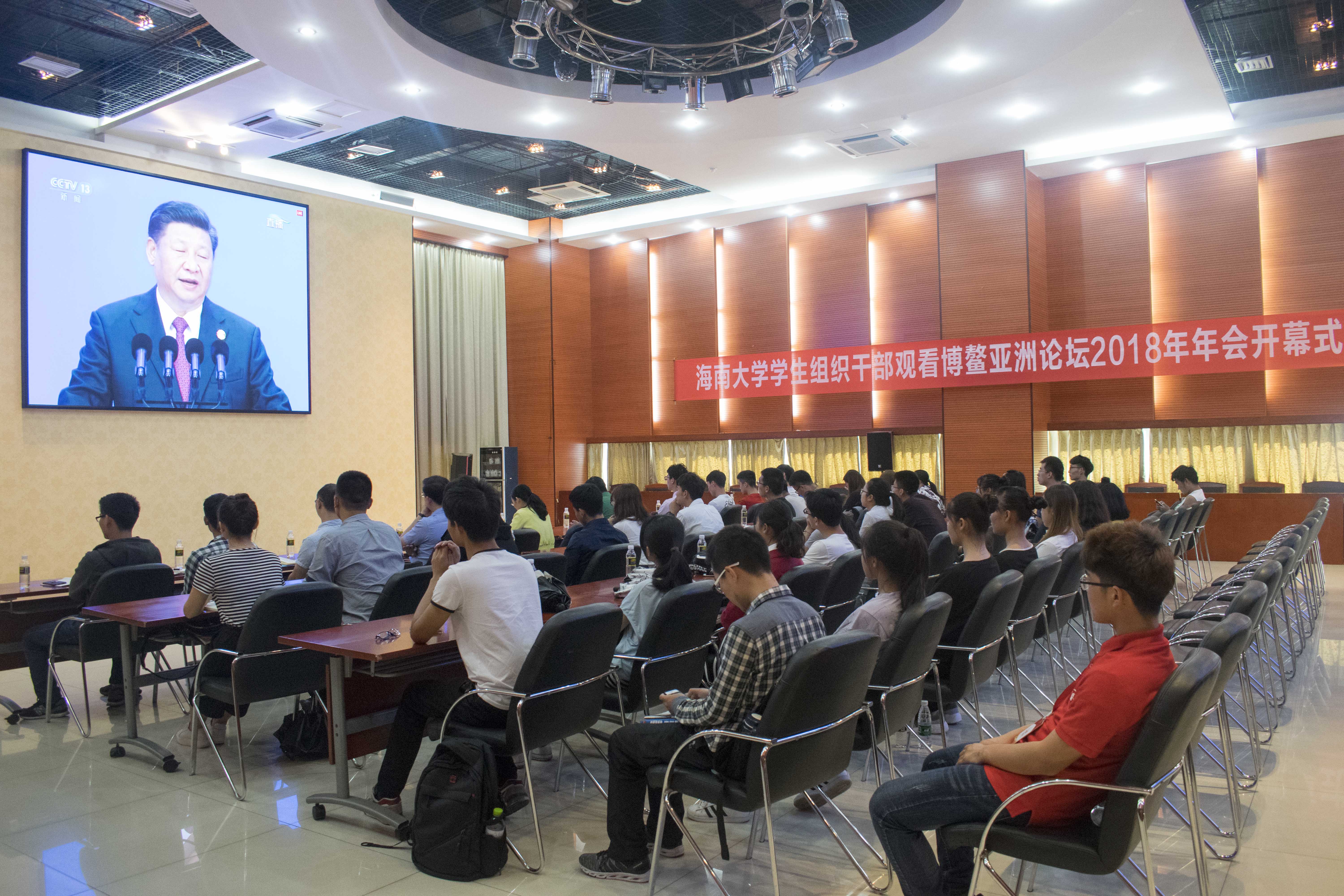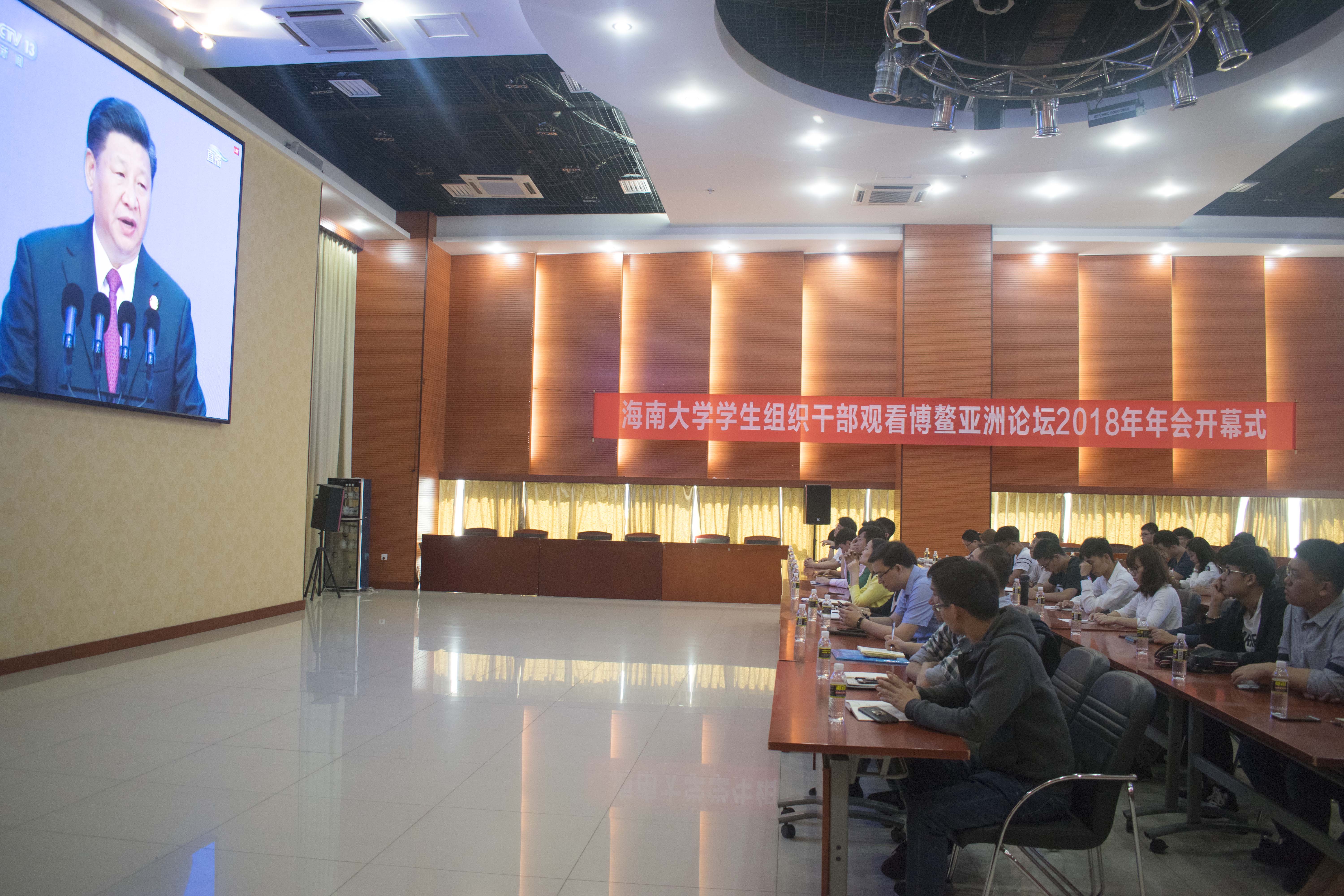 博鳌亚洲论坛2018年年会开幕式于北京时间4月10日9时30分举行。PA视讯集团网站共青团组织青年学生干部第一时间以齐聚在思源多功能厅观看“博鳌亚洲论坛”2018年年会开幕式,并展开热议。