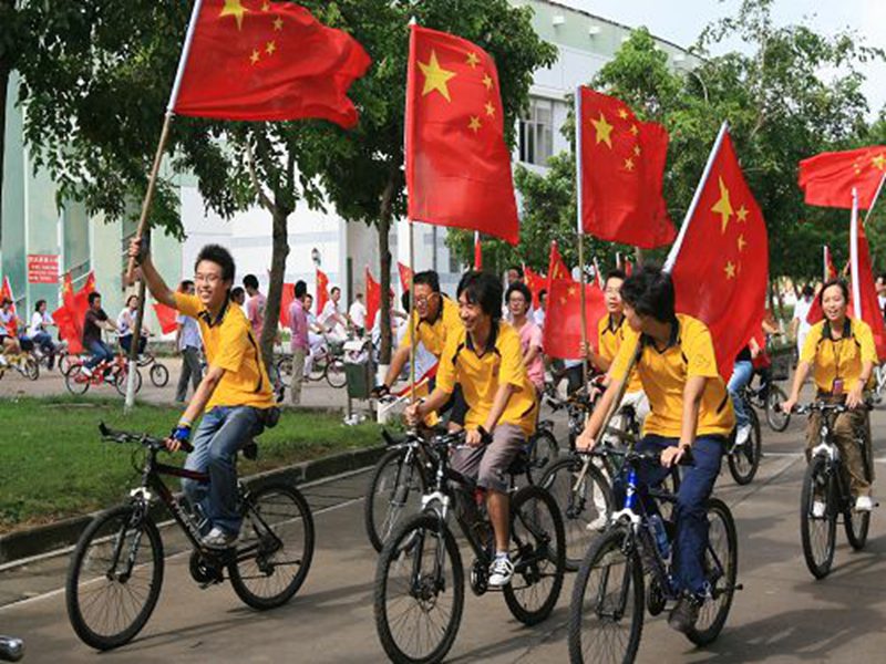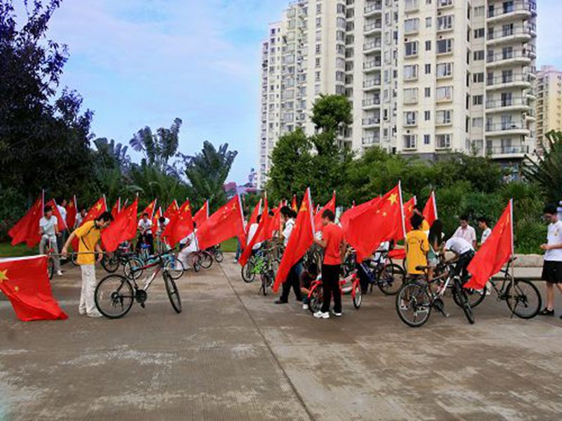红旗飘扬,口号嘹亮,激情飞跃,单车飞扬!海大学子用特别的方式向祖国母亲献上了最真挚的祝福!