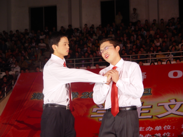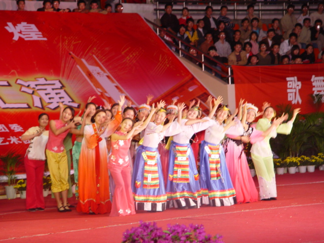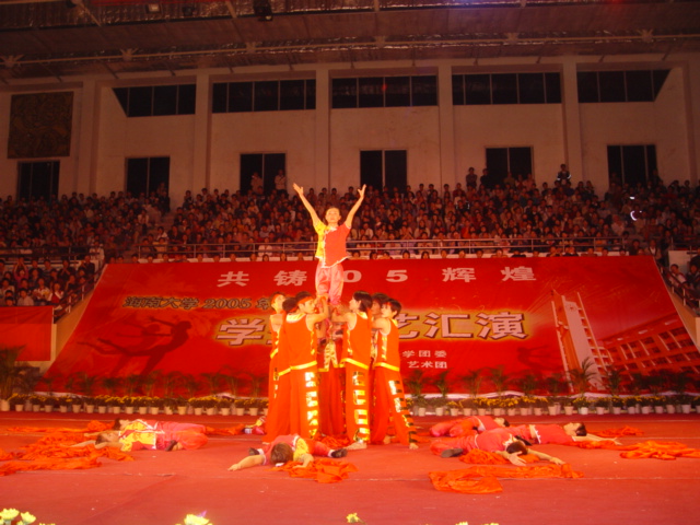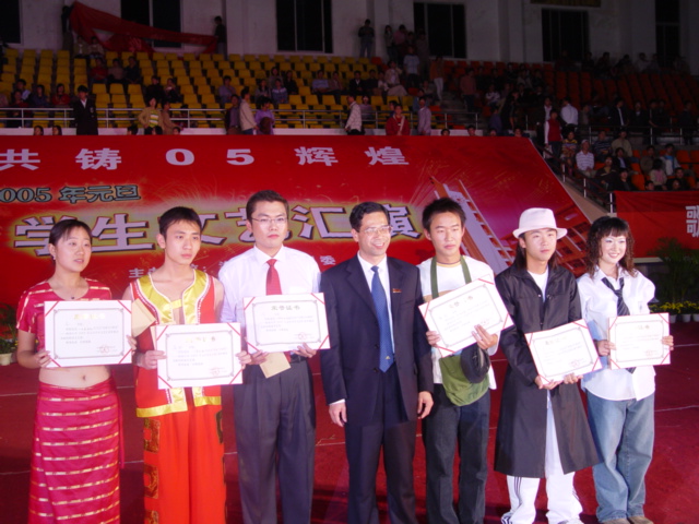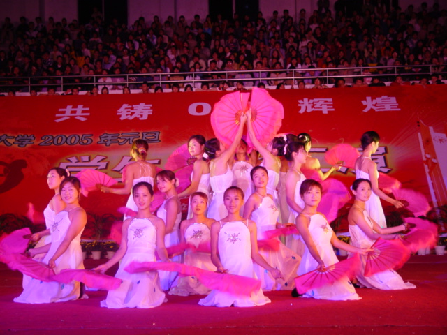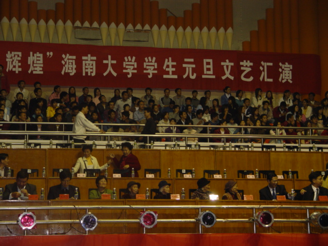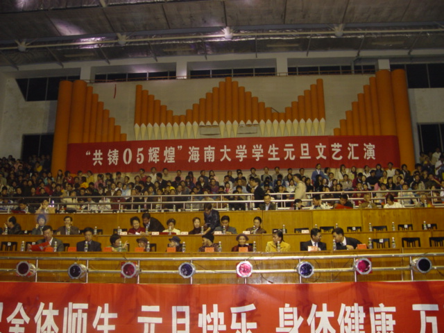 “共铸05辉煌”——PA视讯集团网站2005年元旦学生文艺汇演于2004年12月29日晚在学校联谊馆隆重举行。出席本次晚会的特别嘉宾有红色娘子军老战士:王先梅(92岁高龄,1931.5-1932参加革命)、欧花(89岁高龄,1931-1932参加革命)、王运梅(90岁高龄,1931.5-1932.12参加革命)、潘先英(90岁高龄,1931.5-1932.12参加革命);PA视讯集团网站党委书记赵康太教授、PA视讯集团网站校长谭世贵教授、PA视讯集团网站副校长符华儿研究员、PA视讯集团网站副校长严庆副教授、PA视讯集团网站副校长林强教授等学校领导亲临晚会现场与师生同欢同乐;学校部分处室负责人、学院部分党政领导应邀观看了演出。