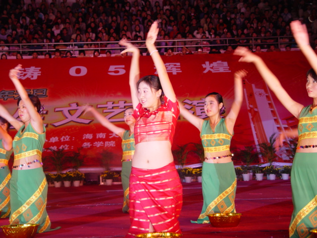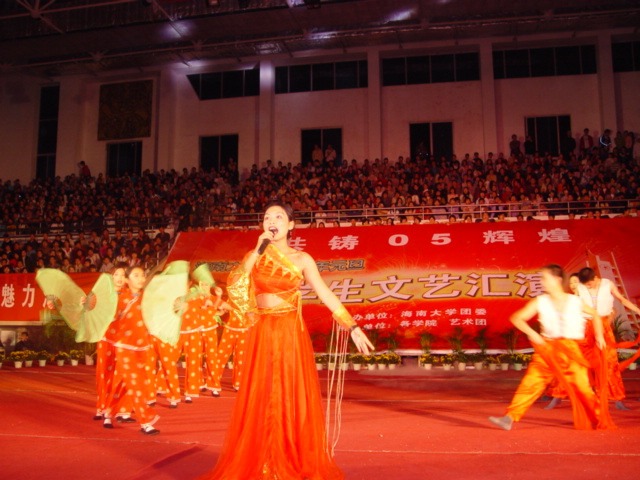 文艺汇演在歌伴舞《好收成》中拉开帷幕。先后上演了“激情岁月”、“魅力无限”、“青春畅想”、“辉煌永远”四个篇章:振奋人心的曲调、让人应接不暇的舞蹈、使人激情洋溢的现代舞……带着在场的师生穿越时空隧道,回溯红色岁月、历经艰苦时光、沐浴繁荣昌盛、展望美好未来。高潮迭起、掌声绵绵,一曲《万泉河水清又清》让全场轰动,一幕“将英语进行到底”让高潮再起波澜。最后,晚会在群舞《锦绣中华》中圆满结束。本次活动充分展示青春海大的活力与激情,充分体现了人文海大的人文情怀,充分反映了魅力海大的无限“风光”。晚会主办方把这一理念完美地融合到晚会中,使晚会别具一格,也极大的鼓舞了海大学子的激情。