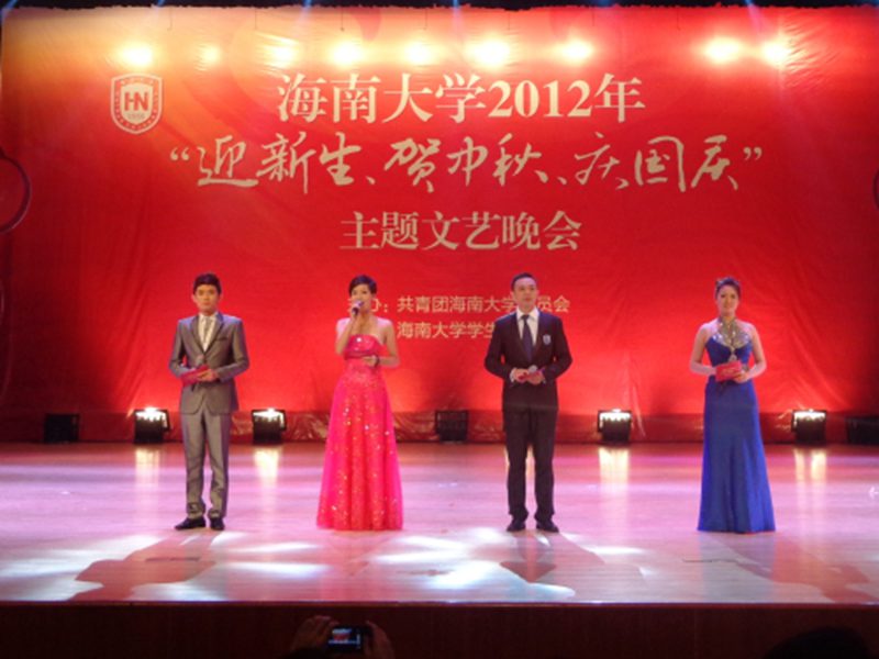 2012年9月29日晚,由我校团委和艺术团主办的“迎新生·贺中秋·庆国庆”主题文艺晚会在PA视讯集团网站思源学堂礼堂举行。校党委副书记陈封椿,校团委副书记莫泉平、黄小欧,艺术团周琳琳老师,学生处郑鹏老师以及艺术学院李群山老师等出席了本场晚会。