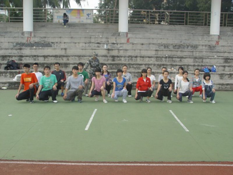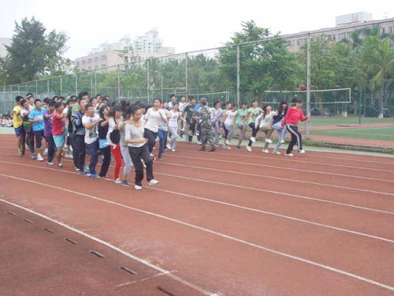 天还未亮,参加培训的教官和学员就已到田径场集合并进行了晨跑活动。晨跑后,教官们按照事先安排将学员们分成了六个班训练,教授他们包括稍息与立正的互换、停止间转法、蹲下与起立的互换及跨立与立正的互换在内的简单单个军人队列动作。教官们认真的教,学员们努力的学,对于一些动作不标准的同学,教官手把手的对其进行纠正指导,学员积极配合,努力改正自身不足。几个小时过后,学员们已基本掌握各项科目的动作要领,动作整齐标准,训练初见成效。而后学员们跟随教官学唱军歌并进行了拉歌比赛,还在教官们的带领下进行了拔河比赛,接力比赛以及两人三足比赛等活动,学员们相互配合、团结一致、奋勇争先,使活动场面活跃、氛围轻松。