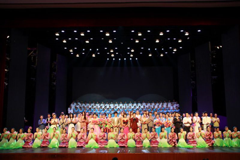 晚会在我校辅导员合唱团带来的《辅导员之歌》、《走向复兴》激昂奋进的旋律中走向结束。最后,嘉宾演员纷纷走上舞台合影留念,以记下这让人终身难忘的瞬间!