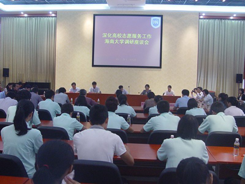 2013年11月8日星期五上午,为了解和深化我校志愿者服务工作,共青团海南省委书记盖文启带领我省志愿服务工作调研组来到我校,并于思源学堂召开志愿服务工作调研座谈会,共青团海南省委党组成员罗桦、省志愿服务指导中心主任周卉、共青团海南省学校部部长牛新文、共青团海口市委代表、以及海口市各区代表陪同调研。我校团委书记、副书记、各学院团委书记、校青协以及各学院的学生代表也参与了此次调研座谈会。本次座谈会由共青团海南省学校部部长牛新文主持。