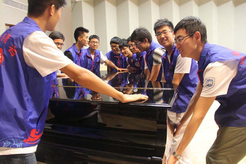 志愿者在搬钢琴