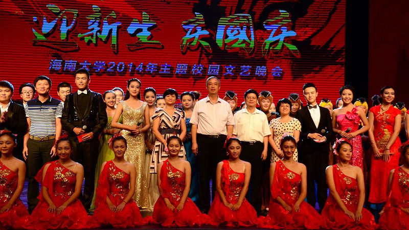 迎着新学年的晨曦,站在新学年的源头,为丰富校园文化,活跃学习氛围,给新同学们一个真正展示自我风采和勇气的舞台。2014年9月30日晚7点40分,“迎新生 庆国庆”主题校园文艺晚会在我校思源学堂大礼堂隆重举办。校党委副书记、纪委书记陈封椿,副校长曹阳以及学校各职能部门负责人和各学院党委书记、院长、副书记、辅导员等同新生们一同观看了本场晚会。
