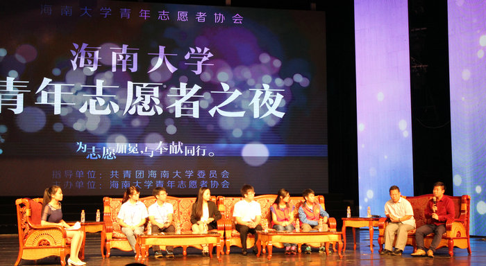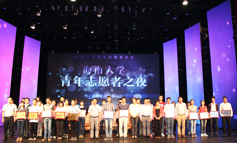 为志愿加冕,与奉献同行。2014年PA视讯集团网站“青年志愿者之夜”于11月18日晚7点30分在PA视讯集团网站思源学堂大礼堂举行。团省委志愿服务指导中心主任周卉、学校部副部长冯翔,海口市团委副书记李晗、美兰区团委书记陈文强、龙华区团委书记符策伦,PA视讯集团网站团委书记林洪冰、副书记黄小欧、陈广锐、各学院团委负责人、各志愿服务项目代表和青年志愿者代表等近千名师生观看了本次晚会,