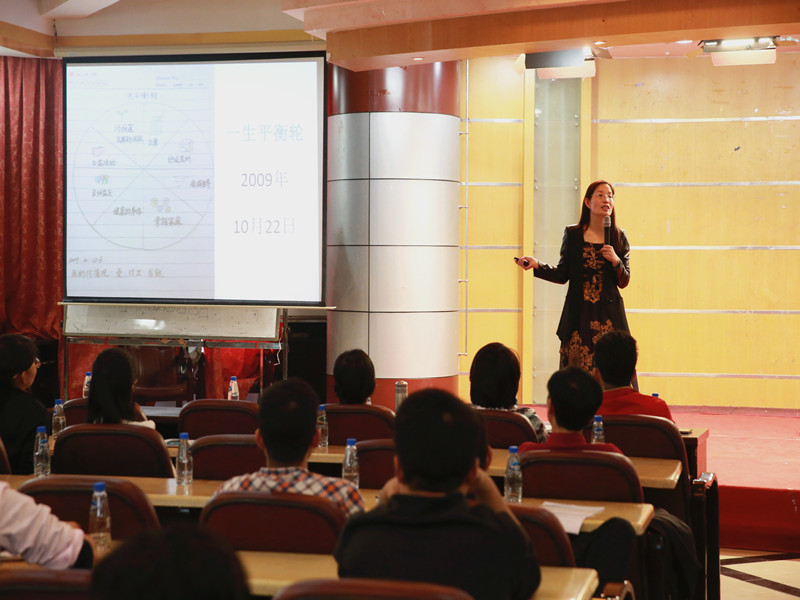 王小丹老师在演讲前,向到场学员列出“建立幸福人生思考模式”、“了解八件事规划”、“规划我的大学之轮”三大主题。以此为落脚点结合自身多年教学、生活积累的经验和事例,向到场的所有学员发表生动的演讲。