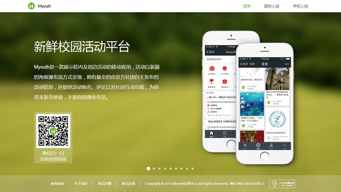 Myouth是由团中央学校部和团中央网络影视中心联合打造的一款具有鲜明共青团特色的新媒体应用,针对社会信息化程度日益加深的发展态势,旨在优化整合团学资源,规范管理,服务大众。Myouth以青年学生的喜好和需求为出发点,借助强大的技术支持,与共青团现有新媒体通用平台无缝对接,以校园活动和学生社团在线运营为切入点,将校园活动、资讯以活泼新颖的形式加以呈现,给用户提供丰富的互动、组织空间。在共青团工作和青年学生需求之间搭建平台,切实提高效率,整合资源,实现共赢。