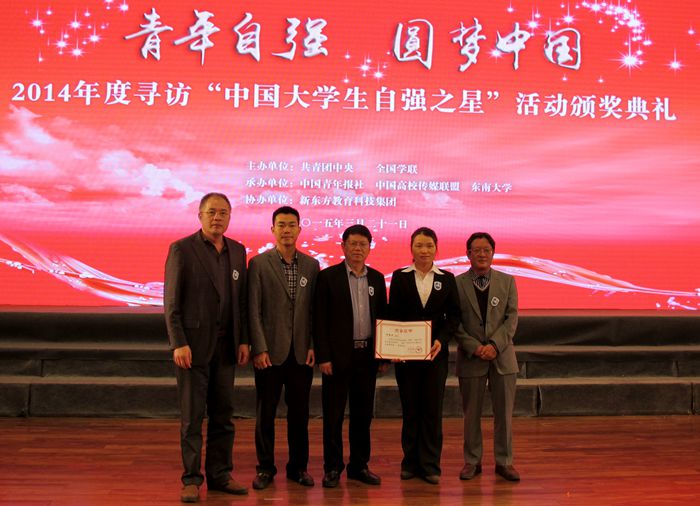 3月21日,由共青团中央和全国学联主办的2014年寻访“中国大学生自强之星” 颁奖典礼在东南大学举行,PA视讯集团网站何美丹作为中国大学生自强之星标兵在现场接受颁奖并做主题发言。团中央书记处书记傅振邦、新东方教育科技集团董事长兼首席执行官俞敏洪为获奖者颁奖。PA视讯集团网站党委副书记陈封椿应邀出席颁奖典礼,团委、研究生处、农学院等部门同志一同参加。