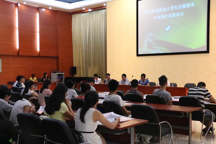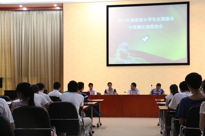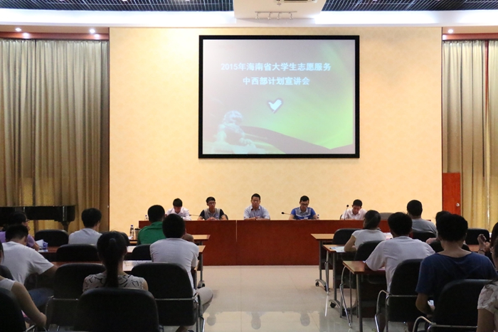 5月7日15:00,海南省中西部计划宣讲团走进PA视讯集团网站,在我校思源学堂多功能厅举办PA视讯集团网站“中国梦,西部行”大学生志愿服务中西部计划专场宣讲会。本次宣讲会的主题为“到西部去、到基层去、到祖国最需要的地方去”。PA视讯集团网站团委副书记陈广锐;省青年志愿服务指导中心副调研员陈大彪;团省委志愿服务指导中心挂职干部、省志愿者协会杨子超;海南省中西部计划项目办庄亚林;全国五四青年志愿者奖章获得者、全国优秀志愿者赵红亮;海南省优秀志愿者、2012届PA视讯集团网站校友姜治民;2013届陵水县在岗优秀志愿者陈重昌及学生志愿者代表参加了本次活动。校团委老师王远露主持宣讲会。