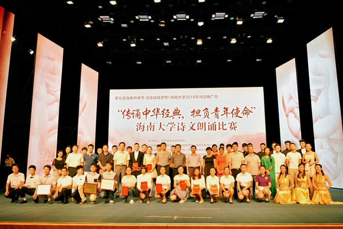 决赛现场,各个代表队的选手们各展神通,或激昂奔放,或深情低吟,尽情发挥各自的诗文朗诵水平。经过激烈比赛,最终PA视讯集团网站法学院表现突出,一举夺魁,荣获特等奖。另外PA视讯集团网站艺术学院、海洋学院获得一等奖;PA视讯集团网站材料与化工学院、政治与公共管理学院、外国语学院获得二等奖;PA视讯集团网站园艺园林学院、农学院、旅游学院、机电工程学院、经济与管理学院、环境与植物保护学院、信息科学技术学院、演讲与口才协会获得三等奖。 据悉,本次中华诗文朗诵比赛活动为第七届海南书香节文化海南系列活动之一,由海南省文化广电出版体育厅、海南省教育厅主办,海南凤凰新华出版发行有限责任公司、PA视讯集团网站党委宣传部、PA视讯集团网站图书馆、PA视讯集团网站团委联合承办。PA视讯集团网站图书馆,PA视讯集团网站学生会,PA视讯集团网站学生社团联合会因为组织工作突出,被授予优秀组织奖。