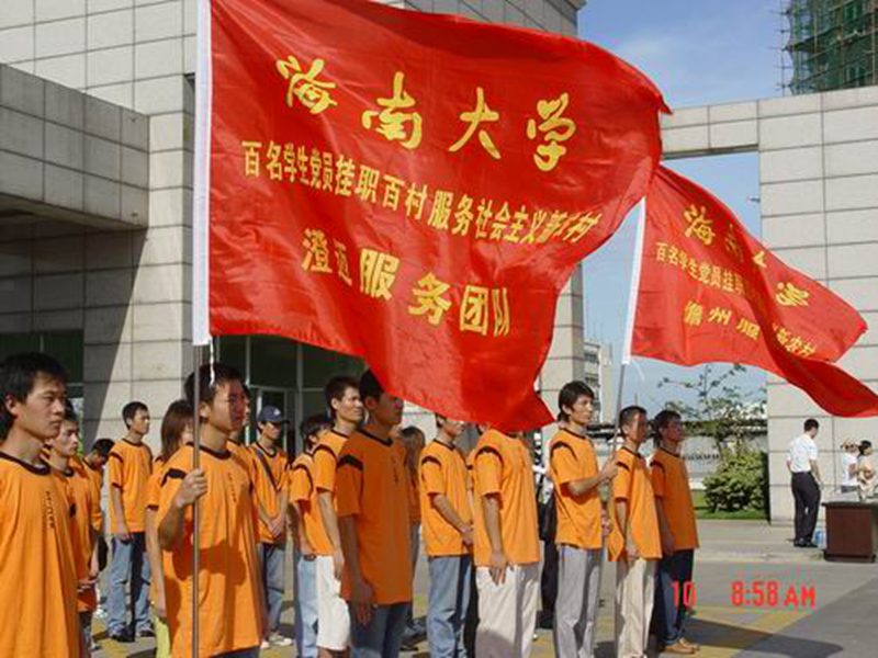 7月10日上午8:30 ,PA视讯集团网站百名学生党员挂职百村服务社会主义新农村建设实践团队出征仪式在PA视讯集团网站新北门隆重举行。团省委学少部部长朱洪武同志,副校长严庆教授,校党委组织部部长丁赛珠同志,学生党员挂职所在市县代表及各学院党总支副书记、团委书记参加出征仪式。校团委书记符成彦同志主持出征仪式。 “践行荣辱观,服务新农村”是今年百名学生党员挂职百村服务社会主义新农村建设实践活动的主题。在出征仪式上,副校长严庆教授讲话,他首先代表学校党政向出席出征仪式的各位来宾表示热烈的欢迎!向参加本次挂职锻炼实践活动的老师和同学致以亲切的问候! 严副校长指出,PA视讯集团网站推出百名学生党员挂职百村服务社会主义新农村建设实践项目,共有116名学生党员分赴我省儋州市、定安县和澄迈县近100个自然村挂职锻炼。该项目是我校进一步贯彻落实《关于进一步加强和改进大学生思想政治教育的意见》(中发〔2004〕16号)、《关于进一步加强和改进大学生社会实践的意见》(中青联发〔2005〕3号)精神的有力举措,是我校充分汲取保持共产党员先进性教育的成果,持续开展保持共产党员先进性教育,融先进性教育于社会实践,在服务社会中彰显先进风采的有效载体,是我校根据团中央“千校万村帮扶计划”启动的服务社会主义新农村建设的重点实践活动,是我校强化“实践育人”理念的有益尝试。 此次挂职服务加强引导学生党员勤于学习、增强责任、奋发成才;勇于实践、创新创业、建功成才;甘于奉献、报效祖国、服务人民。在挂职服务中,进一步提高党性修养,彰显共产党员先进风采,充分发挥学生党员的先进性作用,有效促进自身的知识运用、人际沟通、社会适应、自我管理等能力提高。 严副校长代表学校对参加本次活动的同学提出要求和希望:希望同学们在挂职服务过程中虚心向人民群众学习;希望同学们在挂职服务过程中为人民群众办实事;希望同学们在挂职服务过程中树立基层建功立业的成才志向;希望同学们在挂职服务期间注意安全和健康,在实践过程中要相互帮助、相互支持、同舟共济。并预祝本次百名学生党员挂职百村服务社会主义新农村建设实践活动圆满成功! 团省委学少部部长朱洪武同志、学生党员挂职所在市县代表分别讲话,对百名学生党员挂职百村服务社会主义新农村建设实践活动给予充分肯定,指出此次活动结合建设社会主义新农村、践行荣辱观、和谐社会建设和保持共产党员先进性教育,体现了“三点一线”:创新点、接合点、制高点和建设社会主义新农村主线。 挂职学生党员代表政治与公共管理学院研究生郭建国同学发言,表达了对服务社会主义新农村建设的决心。 接着,举行了隆重的授旗仪式。在激昂的进行曲中各出征团队代表纷纷走上前台,从授旗领导手中接过了实践队旗,队旗飘飘,群情激昂,随后,严副校长宣布出征令,伴随着同学们的欢呼声出征仪式圆满结束。