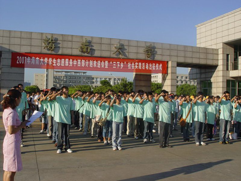接着,举行了隆重的授旗仪式。校党委副书记为学校重点实践团队授旗。在激昂的进行曲中各出征团队代表纷纷走上前台,从授旗领导手中接过了实践队旗,队旗飘飘,群情激昂,随后,韦副书记宣布出征令,伴随着同学们的欢呼声出征仪式圆满结束。 //www.hainanu.edu.cn