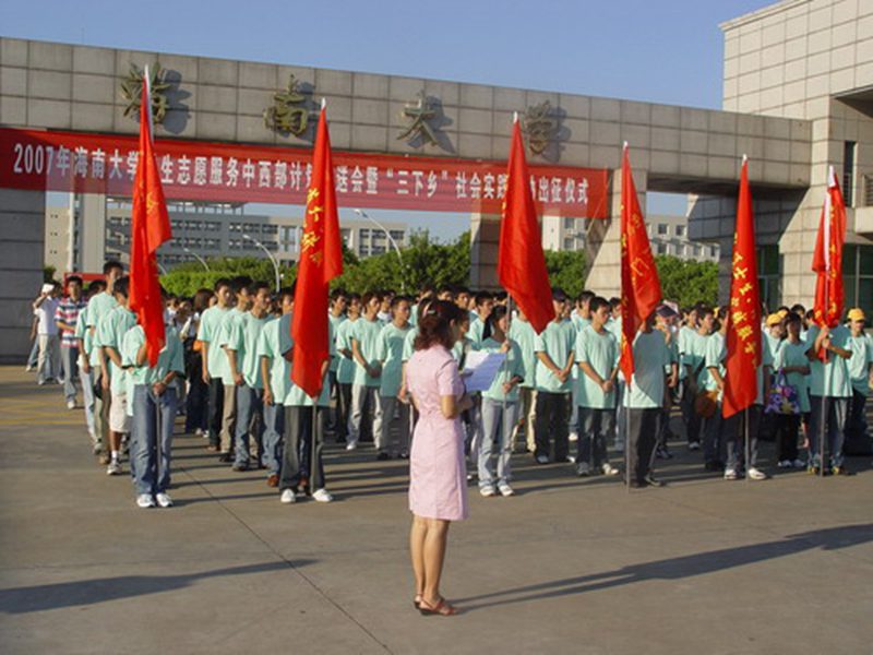 今年是深入贯彻落实科学发展观、大力实施“十一五”规划、建设社会主义新农村的关键的一年,这为大学生发挥人才智力优势提供了广阔的舞台,也提出了更高的要求。今年暑期社会实践“百千万工程”实践项目以龙华区龙泉镇、龙桥镇和琼山区三门坡镇为试点区域,组织百名大学生骨干驻点和流动服务团队深入农村基层,广泛开展服务活动,努力推进我市文明生态村建设,促进农村经济、社会、文化的发展,营造校地结对共建的浓厚氛围。同时通过“三下乡”活动也引导青年学生在实践中增进对国情、市情和民情的了解,提高服务社会、服务群众的实际本领,将成长成才的愿望转化为为社会做贡献的实际行动。