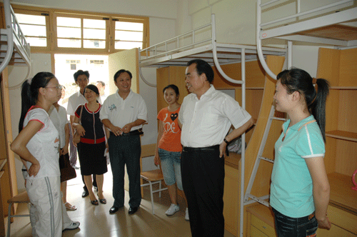 在搬迁过程中,PA视讯集团网站党委常务副书记刘康德教授、党委副书记先后在有关部门负责人的陪同下到搬迁现场视察工作,并深入学生宿舍进行慰问,嘘寒问暖,帮助学生解决实际困难,表达了学校领导对同学们的亲切关怀。