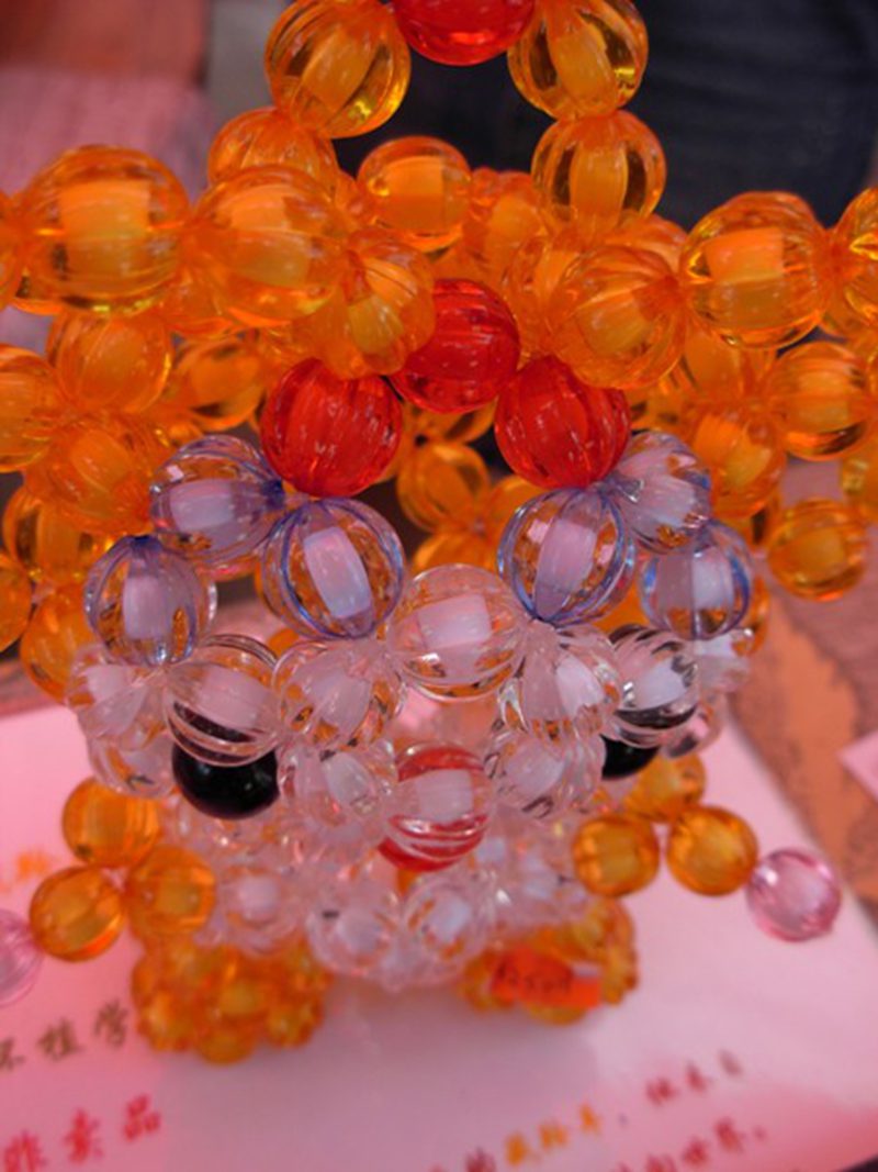 数风流人物,还看今朝乞巧才子。活动展出的作品除少数收藏品外,大多数都是同学们亲手“研制”而成。作品以学院为单位展出,展台上的作品琳琅满目,精致美观,真可谓是“激情插上灵感的翅膀,奥运点燃心中的梦想”,同学们把奥运会,对祖国的祝福以各种作品的方式展现出来,手工制作的奥运会火炬,五圆环,五福娃,北京2008字符等,此外还有字画,刺绣,剪纸,毛织品等,场面十分热闹,同学们纷纷踊跃为自己心仪的的作品投票,最终针织品“卡哇伊布艺”获得第一名,珠子链“红色激情”获得观众最受喜爱手工艺品奖。