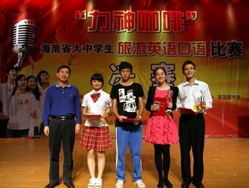 12月23日下午,由共青团海南省委、海南省教育厅、海南省旅游发展委员会、南国都市报主办,海口力神咖啡饮品有限公司冠名,海南职业技术学院承办,海口景山学校、海南在线、海口旅游网协办的以“人人说英语,建功旅游岛”为主题的“力神咖啡”海南省大中学生旅游英语口语比赛决赛在海南职业技术学院大礼堂隆重举行。
