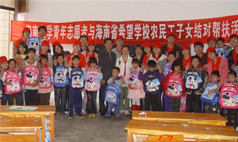 早晨8点,在团委副书记莫泉平的带领下,我校青年志愿者协会的同学们从海大北门出发,前往海口市希望学校探望农民工子女,与农民工子女建立结对关系,进行一对一帮扶。在与农民工子女的相处中,我校志愿者向孩子们提供了学业辅导,指导他们完成周末作业,还与孩子们开展了系列游戏,希望帮助他们提高学习成绩的同时拓展综合素质;活动过程中志愿者们还与孩子们互留联系了方式,以便在孩子们遇到问题或者遭遇挫折时能够及时帮助他们,对他们进行心理疏导,促进他们保持良好的心态以及培养健全的人格;最后志愿者向孩子们爱心捐赠了各种学习用品,包括书包、笔记本和笔,努力为他们创造更好的学习生活条件,孩子们收到礼物都很开心,他们表示会努力学习,争取长大之后成为对社会有用的人。