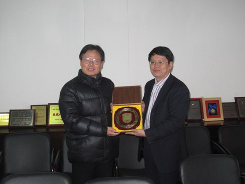 我校党委陈封椿副书记与东华大学党委浦解明副书记互换纪念品