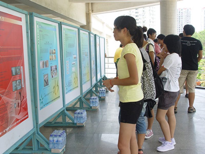 答辩在选手亮相后正式开始,答辩会上,各参赛高校的团队精彩地向评委和在场的观众介绍了自己的作品,学术作品涉猎的范围广,内容丰富,反映了大学生对现实的关注度越来越高,不再埋头搞科研,而是更多地考虑到社会需求。如,黎寨多功能椰雕中药香囊、医用硅胶仿生奶瓶等作品可以看出比赛选手的科研作品非常实用,现场的评委老师除了提问、指导外,还帮选手出点子、寄希望。参赛选手各显身手,尽现风采,通过书面评审、团队现场答辩等环节,经过三个小时的激烈角逐,我校选送的《低成本接触角——表面能测量仪的研制》夺得自然科学和科技发明制作类的桂冠。