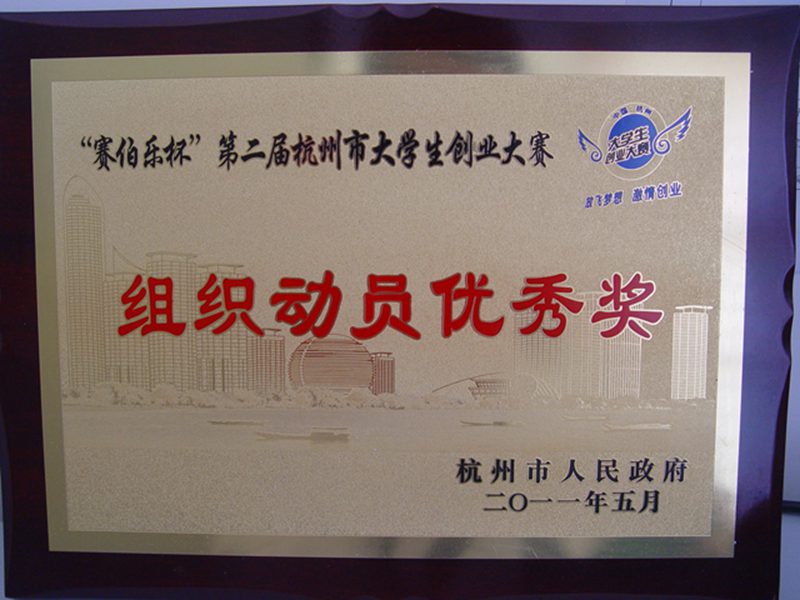 为贯彻落实国务院“以创业带动就业”的战略,鼓励大学生创新创业,进一步搭建资本和项目交流与对接的平台,吸引更多的优秀创业人才、团队和项目,杭州市人民政府于2010年十月至2011年五月间举办了“赛伯乐杯”第二届杭州市大学生创业大赛,已圆满结束。我校侯敏等同学的的参赛项目《幼儿早期阅读计划》为我校争得荣誉,获得组织动员优秀奖。