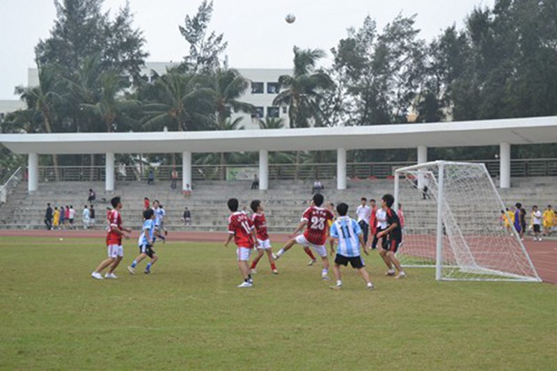 首日出战的时间依次还有信息科学技术学院对战食品学院、城西校区战旅游学院、国际文化交流学院对人文学院、儋州校区对战材料与化工学院,最后外国语学院对战土木建筑工程学院。 宽阔的第一田径运动场上足球运动员们驰骋球场、尽洒汗水,啦啦队激情四射、充满活力。在海南燥热强烈的日光下,一个个精彩的进球一瞬间,一抹抹满足的笑容,一声声激动热烈的呐喊,一滴滴为败球而不甘的泪水……场上熟练的步法让人时刻关注着,场下亢奋热溢的挥舞激励着竞技中的运动员。