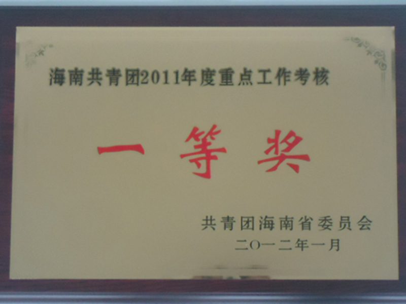 2011年,我校团委着力推进基层团组织建设“强活力工程”,推进“挑战杯”竞赛和大学生暑期社会实践活动,大力促进青年就业创业行动,取得了明显的成绩。在共青团海南省委五届六次全体(扩大)会议上,团省委决定对我校在内的六个学校团委进行表彰,我校名列第一,荣获海南共青团2011年度重点工作考核一等奖。中共海南省委副书记李宪生同志为我校团委领奖代表颁发了奖牌。