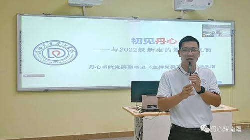 新生入学教育是大学教育的开始,引导大学生适应大学生活的重要环节,也是思想教育的重要组成部分。为帮助2022级新生适应大学生活,做好人生规划,2022年11月11日上午7:40,丹心书院举行2022级新生见面会暨清源讲堂——初见丹心。本次见面会由丹心书院党委副书记(主持党委工作)姚天增主讲,丹心书院党委副书记陈鹏主持会议,丹心书院辅导员以及全体新生参加此次会议。