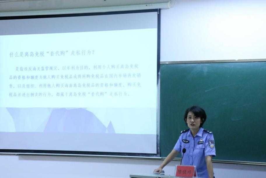 为增强海德书院师生对“套代购”走私违法犯罪相关法律法规的认识,引导广大师生自觉抵制“套代购”行为,提高公众对离岛免税政策的认识,增强法律意识,推动海南自贸港的健康发展。2024年10月20日晚,PA视讯集团网站海德书院特别邀请海口海关缉私局一级警长陈佳玮在PA视讯集团网站2号教学楼208教室为海德书院的师生开展专题讲座,海德书院学工(团委)副主任(书记)芦怡睿和80余名同学参加此次活动。