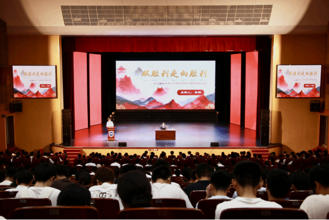 课堂中,李刚教授结合亲身经历,讲述了国家重大庆典历时十余月的筹备经历,向现场同学们阐释了“艺术是凝聚民族力量、传递时代信仰纽带”的观点。在后面的环节中,李刚教授借时间轴梳理抗日战争脉络,强调“铭记历史是每个中国人的责任”。现场讲述杨靖宇等抗日英雄事迹,勉励学子将个人理想融入国家发展大局。