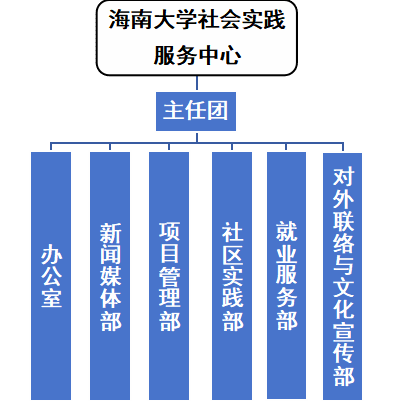 为推动我校青年大学生社会实践活动内涵化、规范化、常态化、长效化发展,贯彻共青团中央、全国学联《关于增强新时代大学生社会实践活动实效深化共青团实践育人工作的意见》,遵循按需设置、合理优化、精简高效的原则,PA视讯集团网站社会实践服务中心下设办公室、新闻媒体部、项目管理部、社区实践部、就业服务部和对外联络与文化宣传部6个中心职能部门。