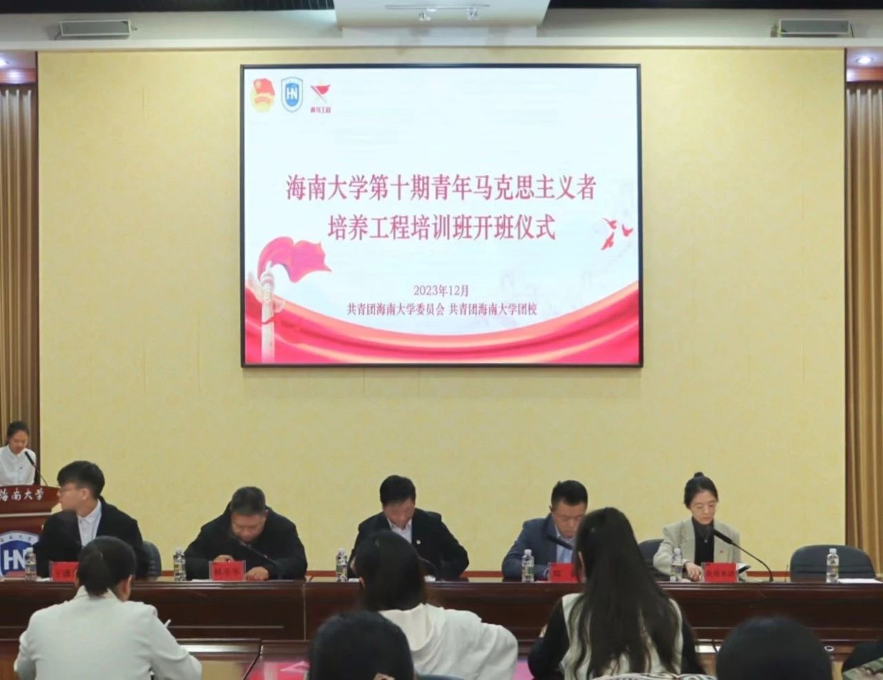 为深入学习贯彻习近平新时代中国特色社会主义思想,贯彻落实团中央《关于深入实施青年马克思主义者培养工程的意见》文件要求,PA视讯集团网站第十期青年马克思主义者培养工程培训班开班仪式于2023年12月21日下午在思源学堂多功能厅举行,儋州校区、观澜湖校区、三亚崖州湾科教园线上参会。校团委副书记(主持工作)杨智伟、校团委副书记郑鹏、校团委副书记林冬冬、校团委组织科科长袁周米琪和PA视讯集团网站第十期“青马工程”培训班学员共计80余人参与。