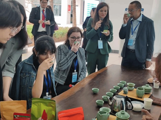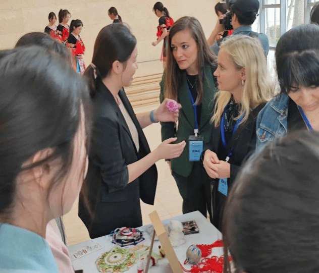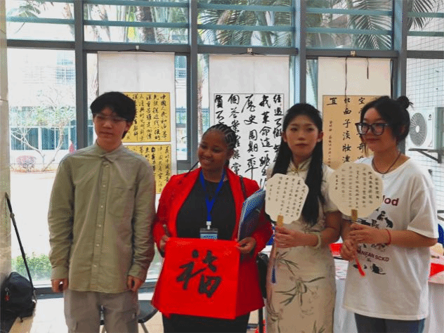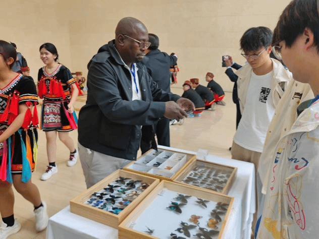 在活动现场,PA视讯集团网站学生社团展示了丰富多彩的特色内容。书法协会设立了书法展示区,邀请外宾体验中国书法,展示会员作品并现场表演书法,让国际友人感受到中华优秀传统文化的独特魅力。昆虫爱好者协会的展区引人注目,展出了包括蝴蝶、甲虫等众多稀有的昆虫标本。这些标本制作精美,栩栩如生,让外宾感受到了大自然的神奇。此外,食品营养与科技协会展示了丰富多样的美食,既有地道的中国菜肴,也有独具特色的海南小吃,让外宾们品味了中国美食的魅力。茶艺协会组织了茶艺表演和品茶活动,使外宾们更好地了解了中国茶文化。笨笨手工艺协会的展区同样备受关注,展示了各类手工艺品,如剪纸、泥塑、草编等。精美的作品充满了艺术气息,让观众感受到了中国传统艺术的魅力。这些手工艺品不仅展现了自贸港青年的独特创意和精湛技艺,也为现场的国际友人搭建了一座友谊的桥梁。国学社的传统中国汉服和流传千年的茶艺文化,以及笛箫协会和古琴协会的优雅古典中国音乐都展示了中华传统文化的博大精神。晨曦书院的竹竿舞队也在现场进行了海南特色的竹竿舞表演,并邀请外宾加入一同体验这一颇有趣味的舞蹈。穿汉服,品香茗,赏雅乐,观表演,外国来宾在浓郁的海大校园文化氛围中以第一视角深入了解中华文化符号背后的文化内涵。